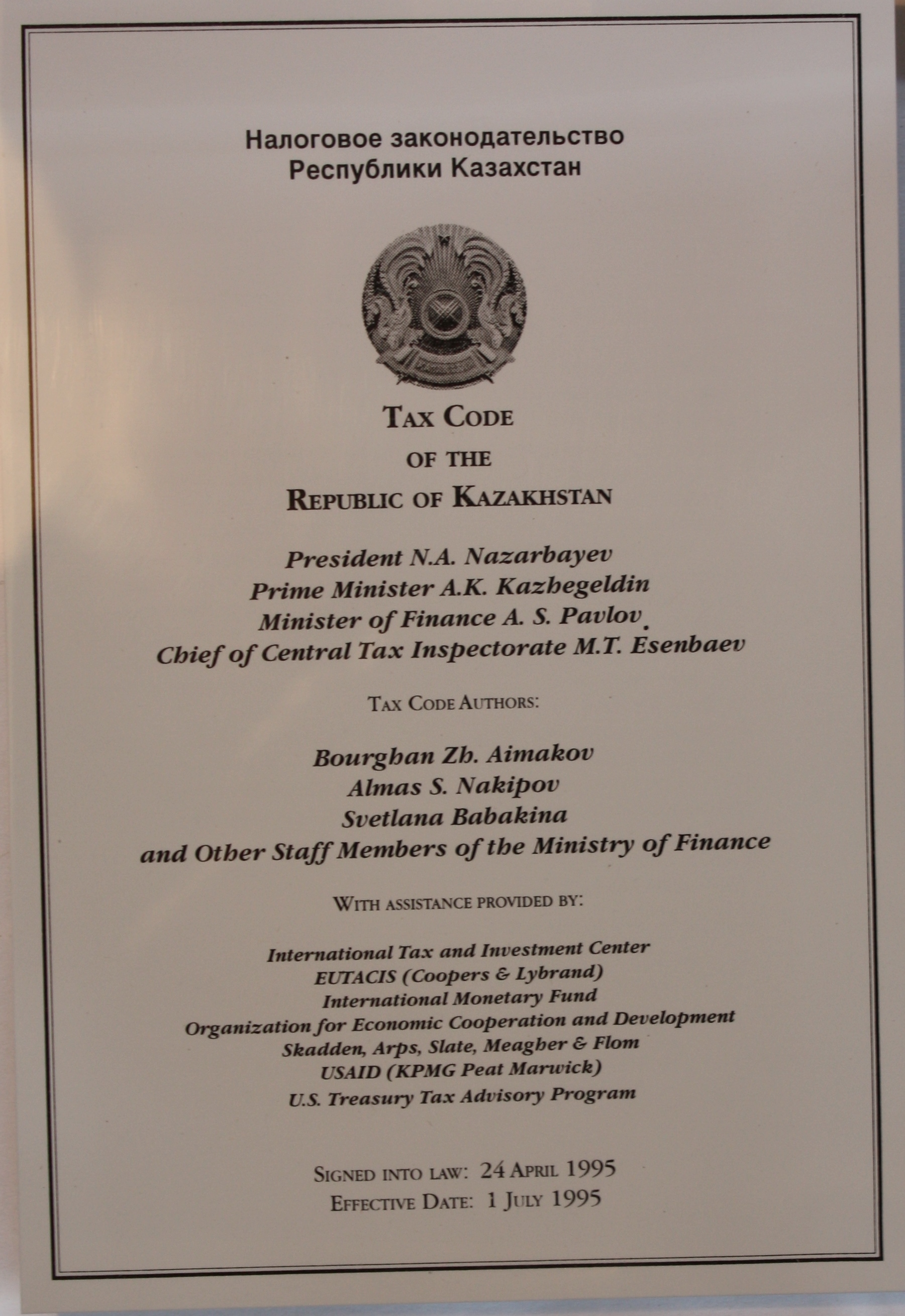 I HELPED WRITE KAZAKHSTAN’S TAX CODE. (PLEASE, NO BRICKBATS!)